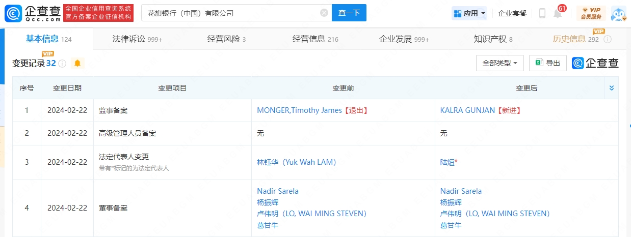 每经AI快讯,企查查App显示,近日,花旗银行(中国)有限公司发生工商变更,林钰华(Yuk Wah LAM)卸任法定代表人,由陆烜接任。该公司成立于2007年3月,注册资本39.7亿元人民币,由美国花旗银行有限公司全资持股。